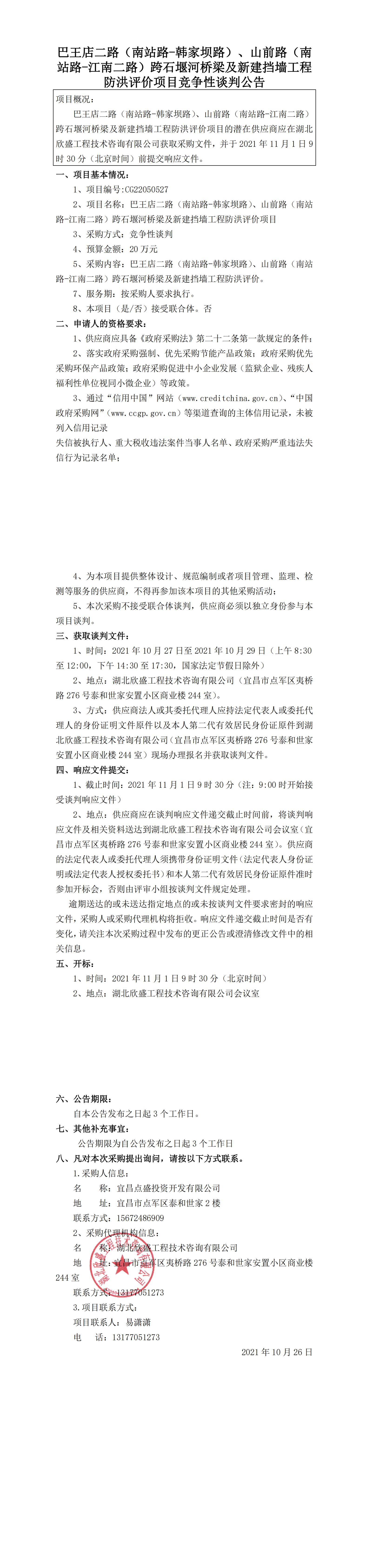 巴王店二路(南站路-韓家壩路)、山前路(南站路-江南二路)跨石堰河橋梁及新建擋墻工程防洪評價項目談判公告