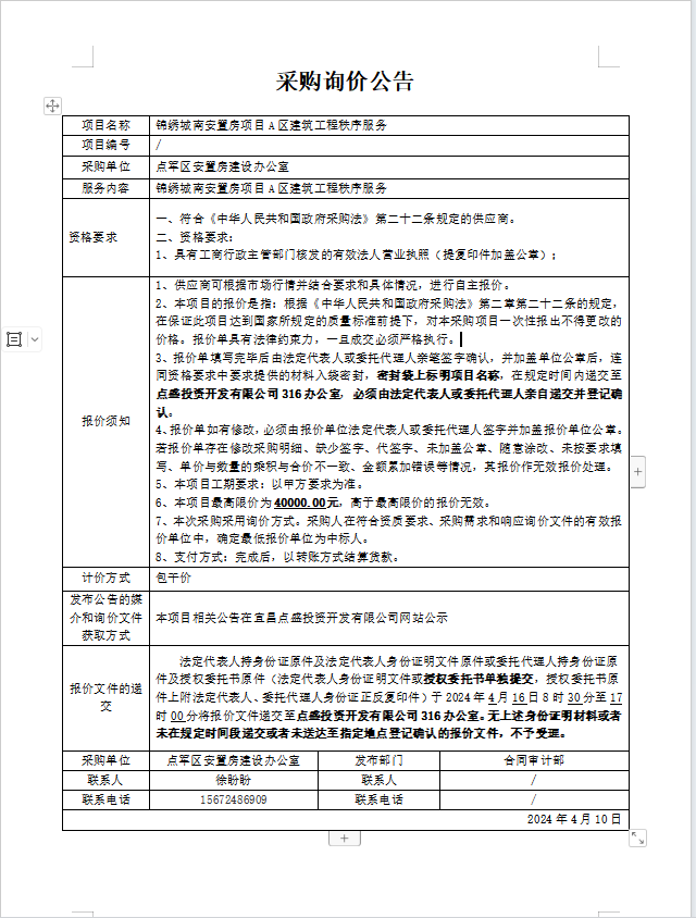 錦繡城南安置房項(xiàng)目A區(qū)建筑工程秩序服務(wù)詢價公告
