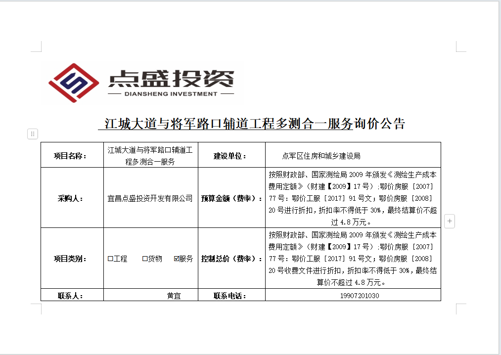 江城大道與將軍路口輔道工程多測合一服務(wù)詢價(jià)公告