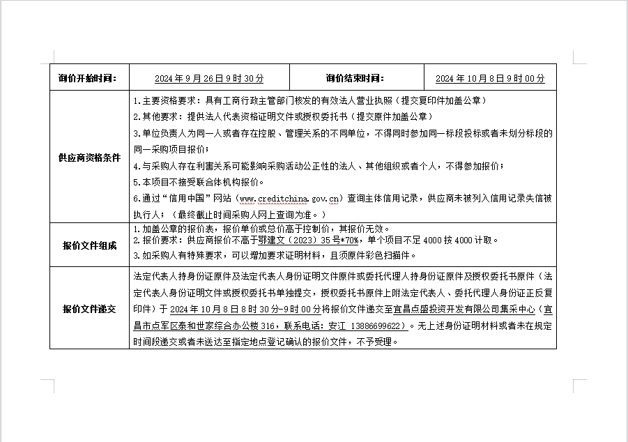 詢(xún)價(jià)公告