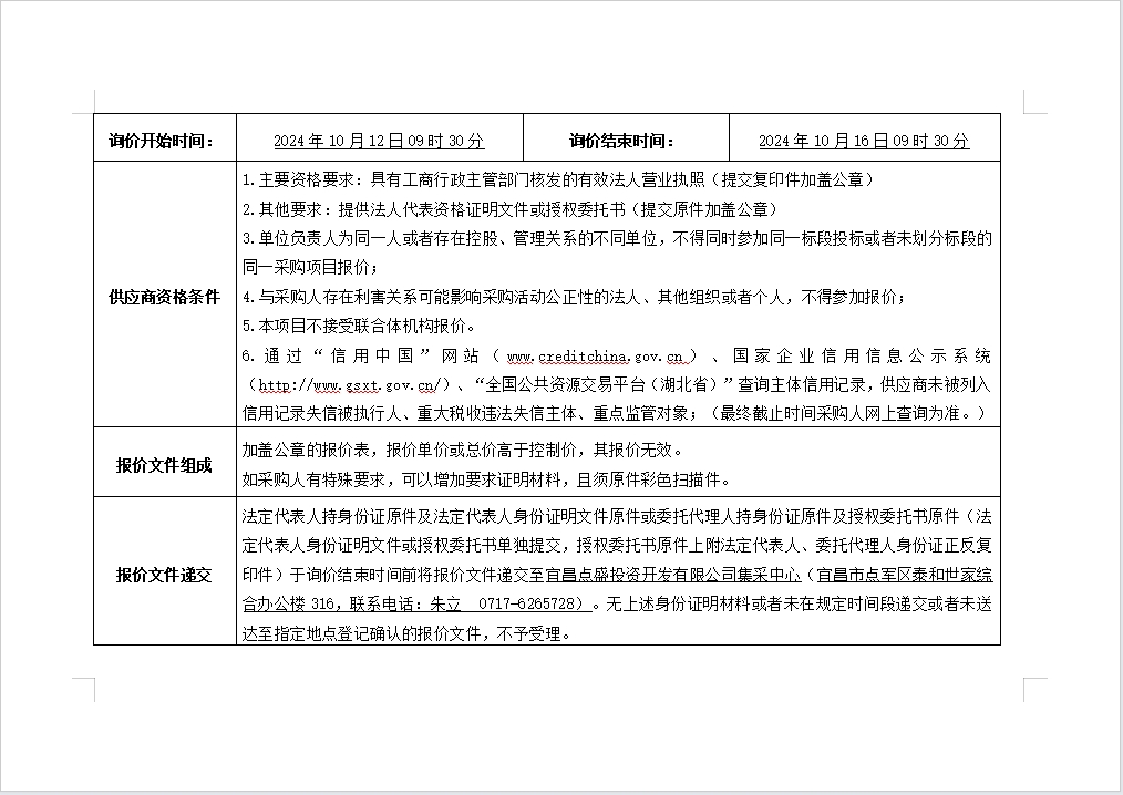 詢價(jià)公告
